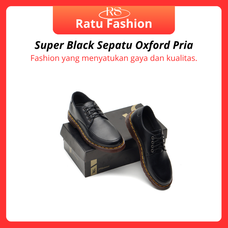 JYF - Super Black Sepatu Oxford Pria Formal Kantor Kerja Kuliah Kondangan Pantofel