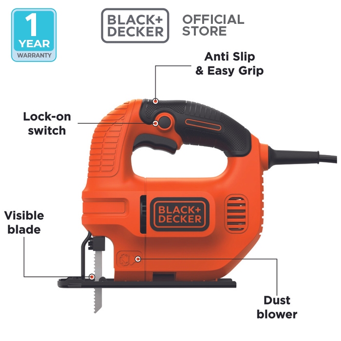 Black+Decker Jigsaw Single Speed / Gergaji Kayu Listrik 400W KS501-B1