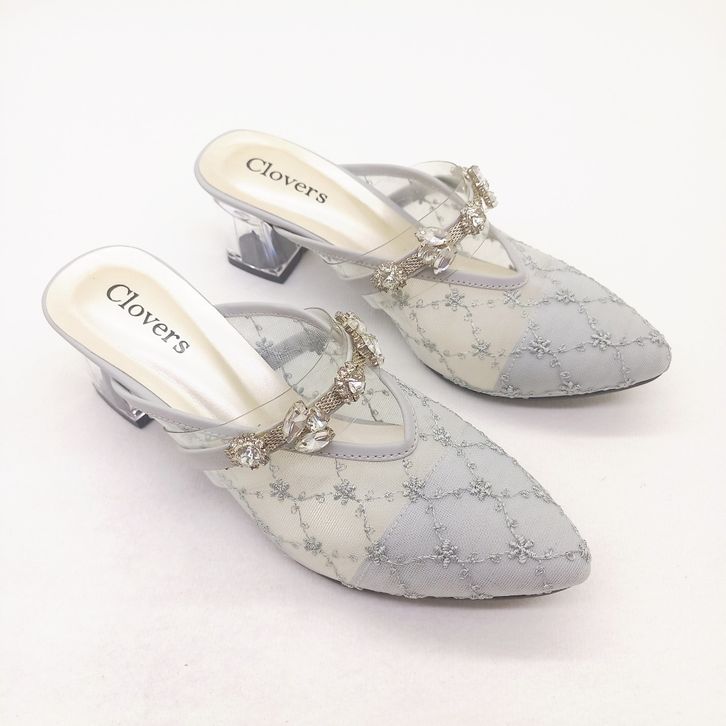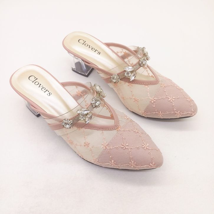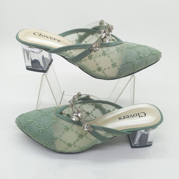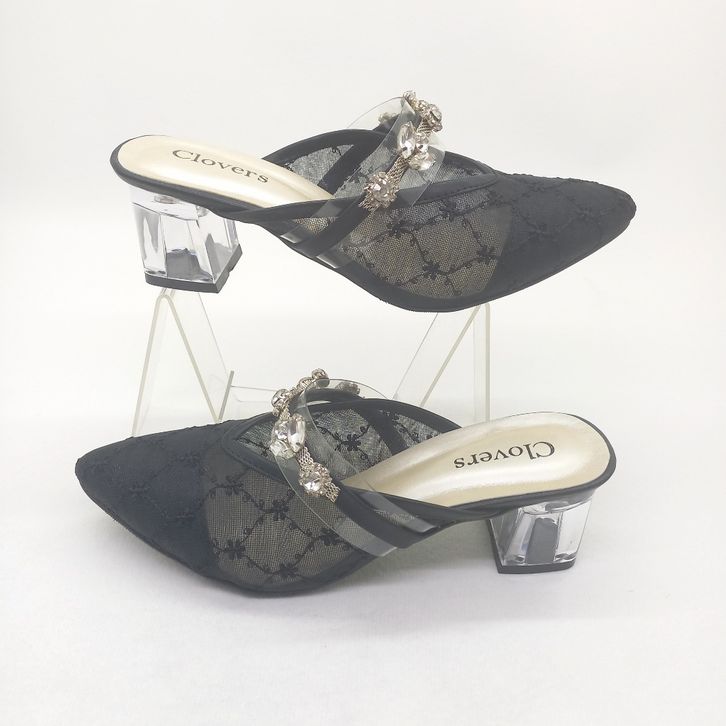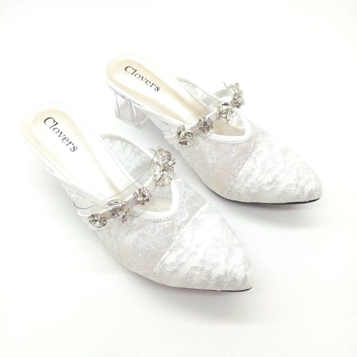 Sandal Wanita Pesta Pernikahan Sandal Wisuda High Heels Brukat Permata Hak Kaca 5 Cm