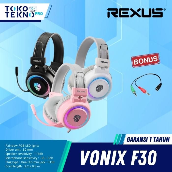 Rexus F30 Vonix LED RGB Gaming Headset Microphone Earphones Headphones Earphone - HITAM