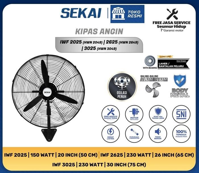 SEKAI Kipas Angin Dinding Tornado Kipas Angin Industri Alumunium - IWF 2625