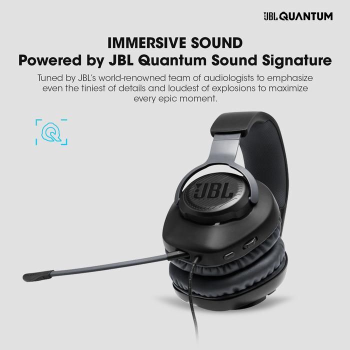 JBL Quantum 100 Wired Over-Ear Gaming Headset with Detachable Mic - HITAM