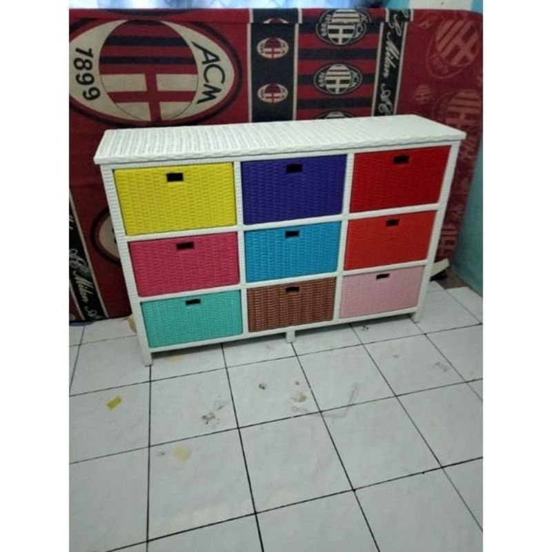 Meja Tv 9 Laci Rotan Lemari Rak Minimalis Rotan Sintetis 9 Laci Warna Warni Meja Tv Rotan