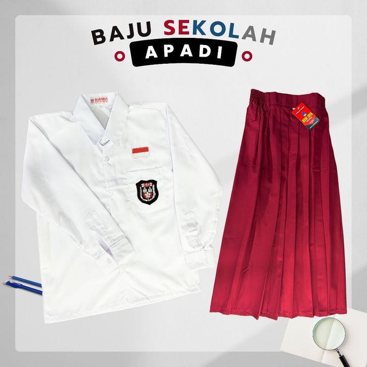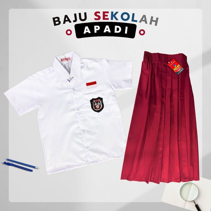 NEW Arrival Setelan Baju Seragam Sekolah SD Kemeja Putih Lengan Panjang atau Pendek dan Rok Merah Panjang onabg