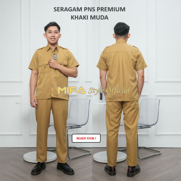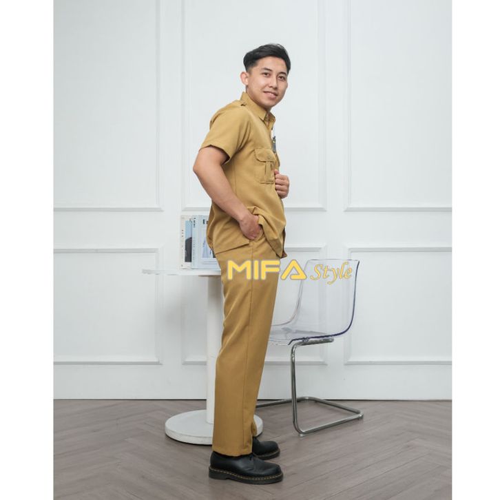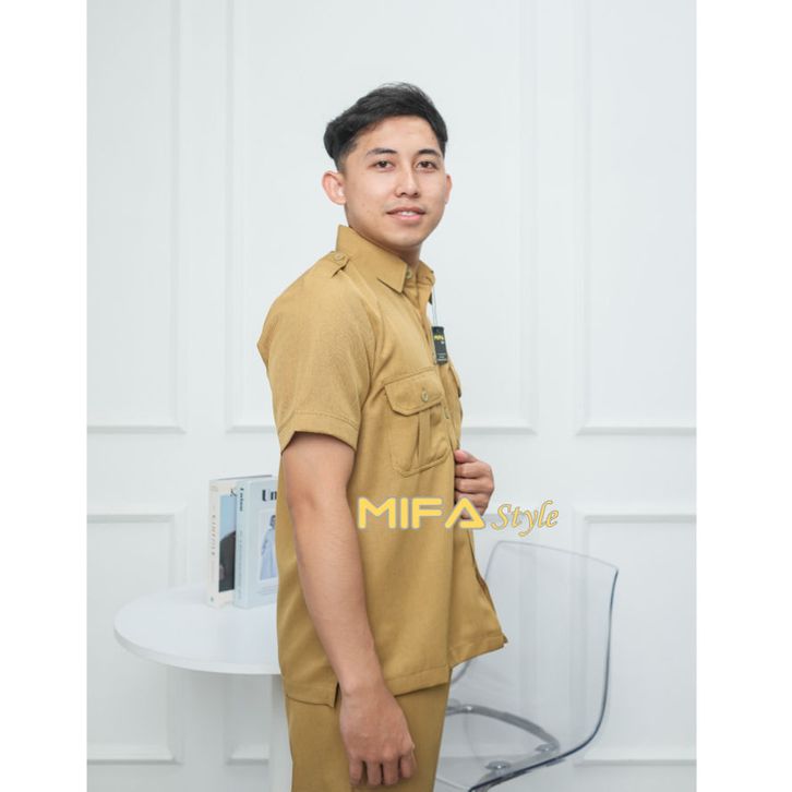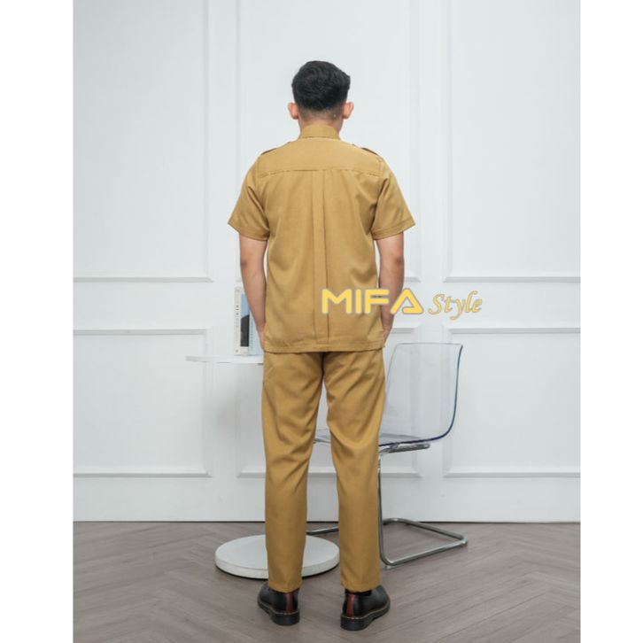 MIFA Seragam PNS Pemda Khaki Muda Pria PDH Pegawai Negeri Seragam ASN Baju Guru Pns Pemda Baju Dinas