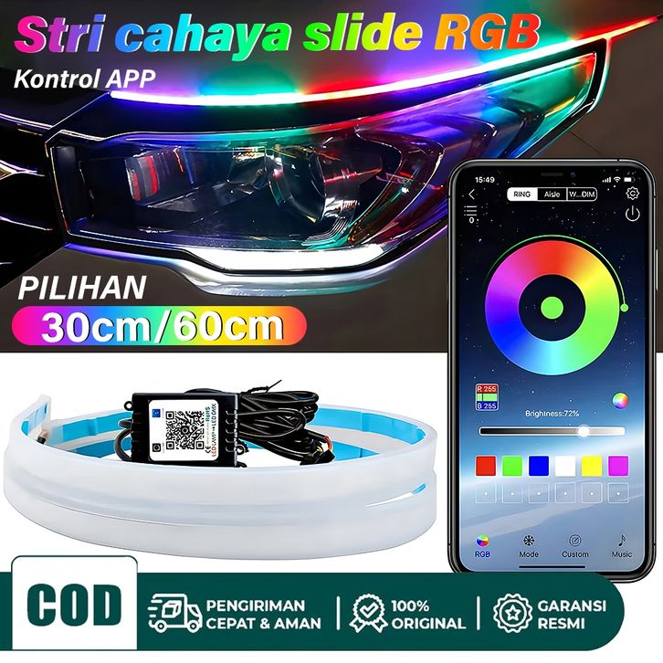 1 Set Lampu LED DRL Alis Flexibel WRGB APP Bluetooth 30/60cm Welcome + RGB Matrix Mobil Motor Premium
