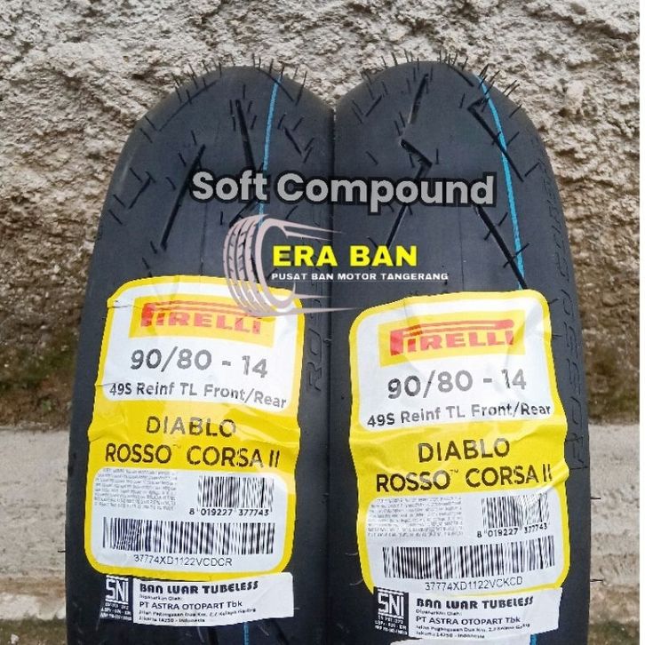 SEPASANG Ban Pirelli Diablo Rosso Corsa 2 90/80-14 Soft Compound For Race