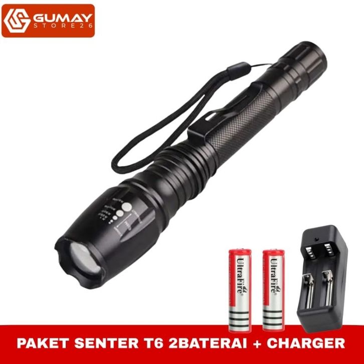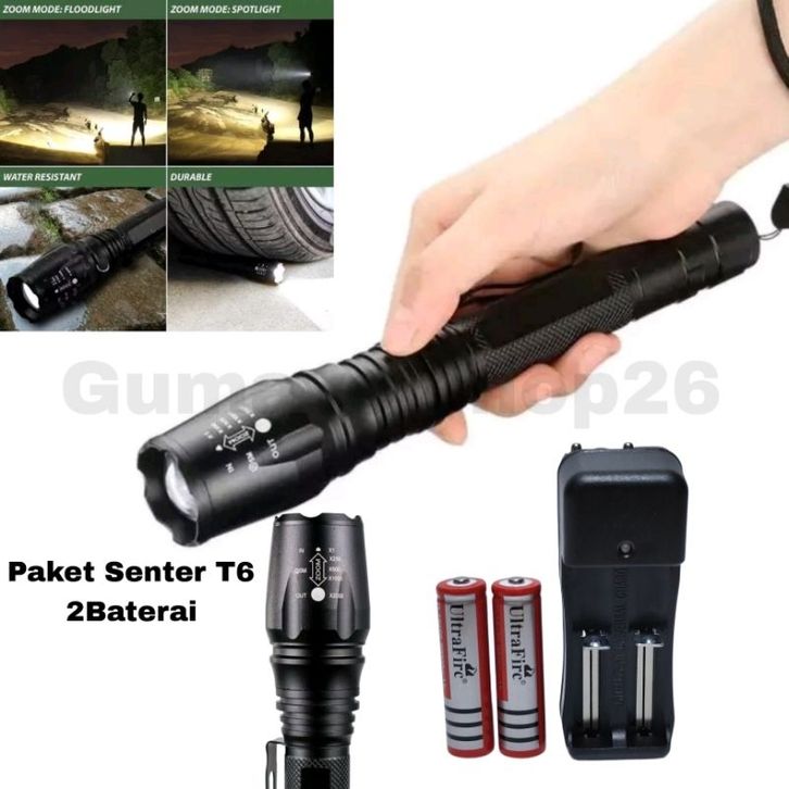 MURAH Paket Komplit Senter T6 X8 / Senter Super Terang T 6 X8 Flash light / Senter Tangan LED onihk