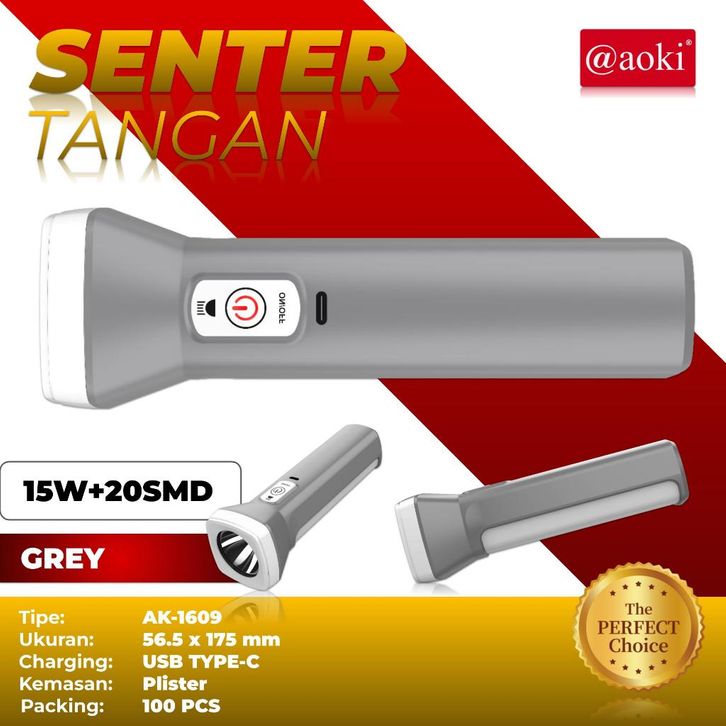 TERBARU AOKI Senter tangan modern kekinian LED 15W+20SMD Baterai lhitium tahan lama warna Biru grey efagg