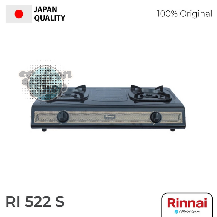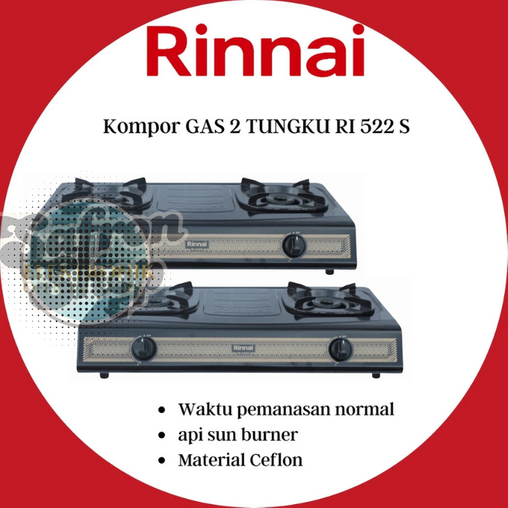 RINNAI KOMPOR GAS 2 TUNGKU RI 522 S /RI522S/RI 522S/RI-522S/RI-522 S/STAINLESS/100% ORIGINAL/GARANSI