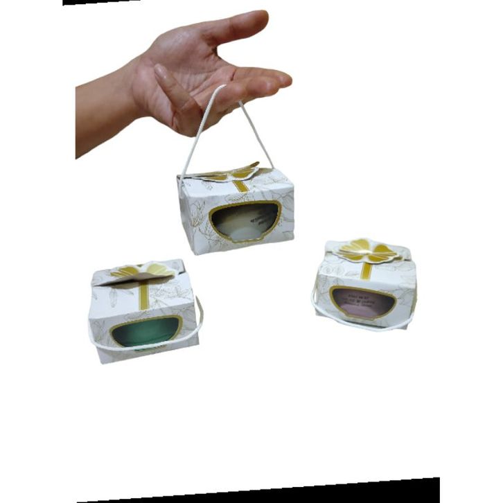 (100 Pcs) + Sablonama Souvernir Mangkok Soft Kemas Box Kertas Gol