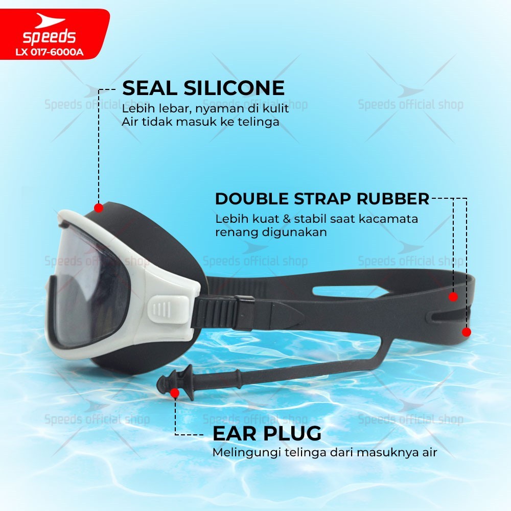 SPEEDS KACAMATA RENANG DEWASA SWIMMING GOOGLES REMAJA ANTI FOG ANTI UV BIG FRAME 017-6000