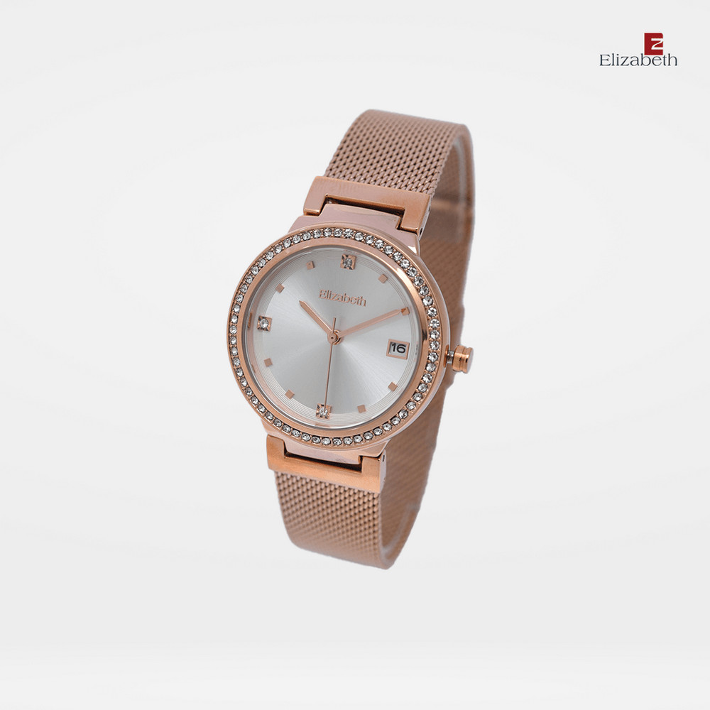 Jam tangan Wanita Elizabeth Mesh Strap 2203-0650 original Elizabeth Official Store Jam cewek casual kerja sekolah kuliah
