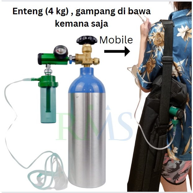Tabung 2 Liter Aluminium Portable + Regulator O2 RMS + Tas - Reg. Portable Medis
