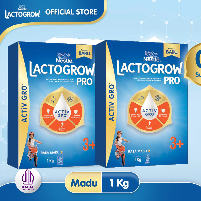 Nestle LACTOGROW PRO 3+ dengan ACTiVGRO Susu Madu/Vanila Box - 1000gr x2