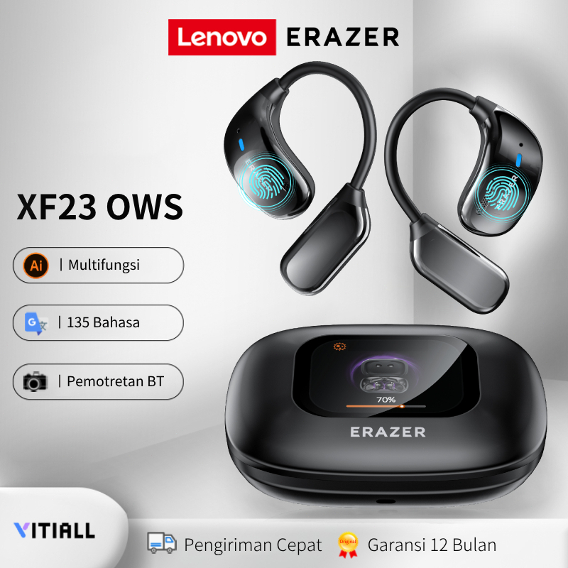 Lenovo ERAZER XF23 Multifungsi Headset Smart AI Wireless Earphone Bluetooth 5.4 VITIALL OWS Open Ear TWS Bone Conduction Headphone