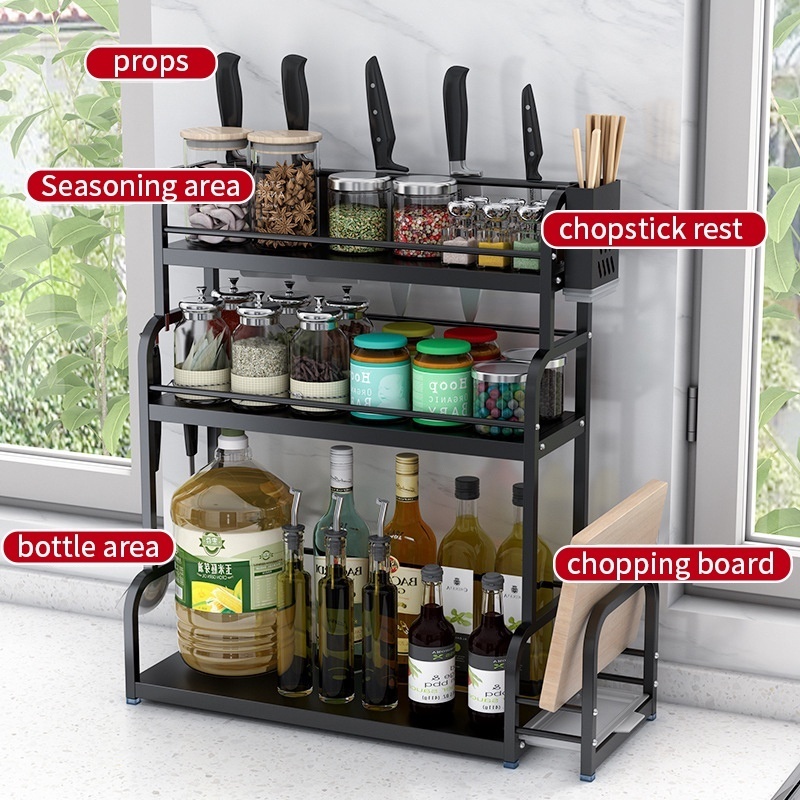SIAP KIRIM - RAK BUMBU DAPUR STAINLESS STEEL RAK BOTOL BUMBU RAK PENYIMPANAN BUMBU DAPUR RAK BUMBU 3 SUSUN