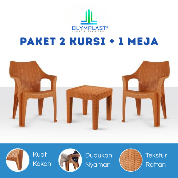 KURSI PLASTIK NAPOLLY 1 SET MEJA BANGKU SANDARAN TERAS DEPAN RUMAH OLYMPLAST RUANG TAMU KANTOR MAKAN SANTAI ROTAN PAKET