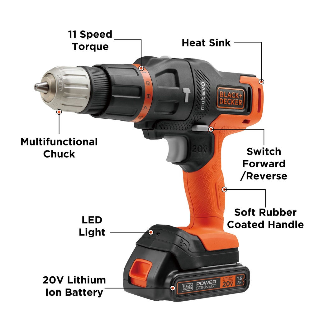 Black+Decker Multi Evo 6 Heads Kit / Mesin Multifungsi Baterai 18V EVO185K6-B1