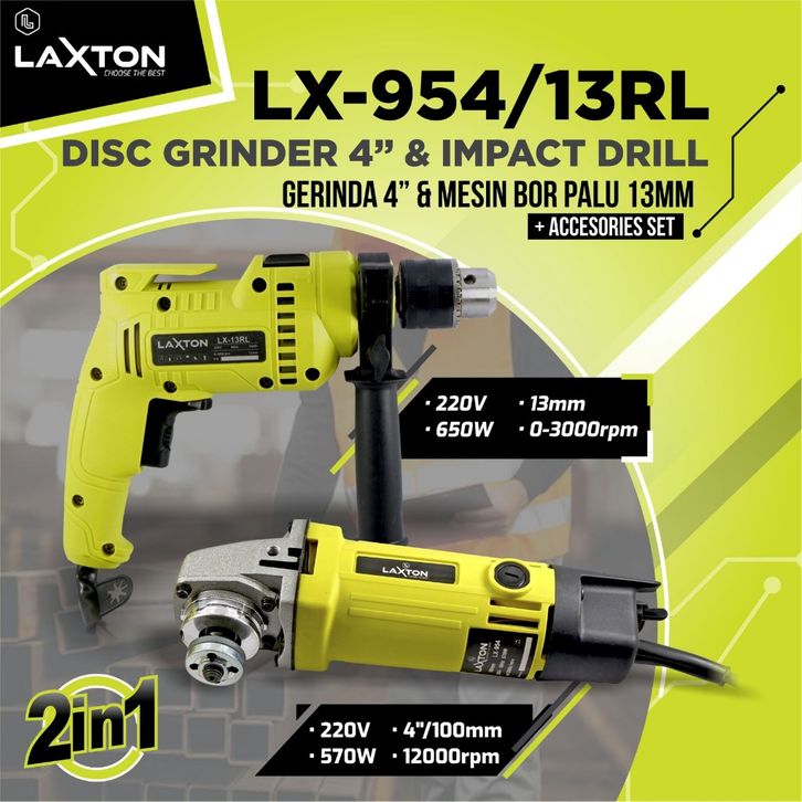 LAXTON LX954/13RL paket mesin gerinda tangan angle grinder dan bor beton listrikpeed