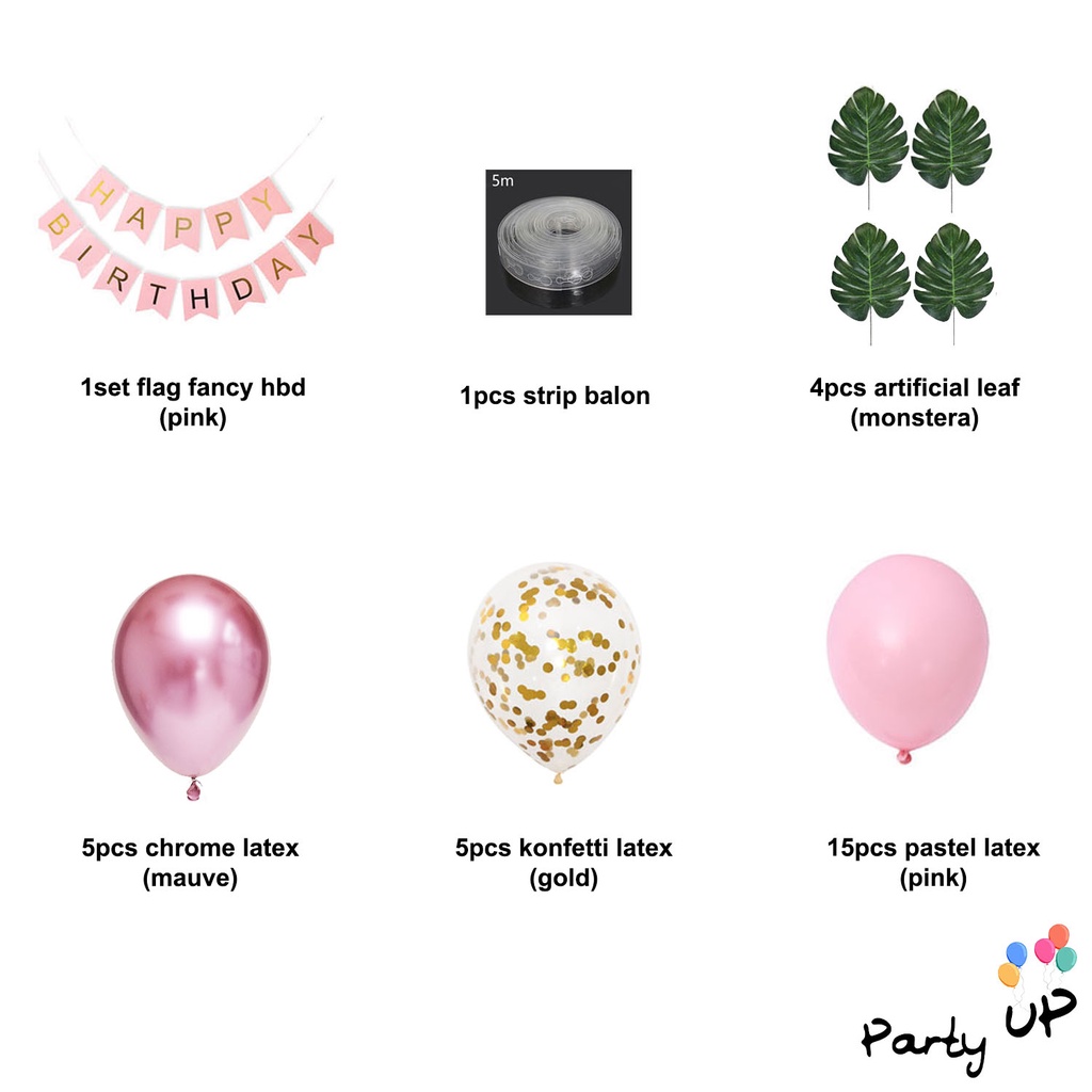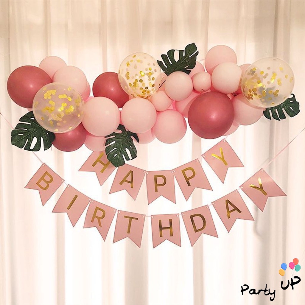 [Arch Set] Simple Flag Pink Chain Balloon Decoration