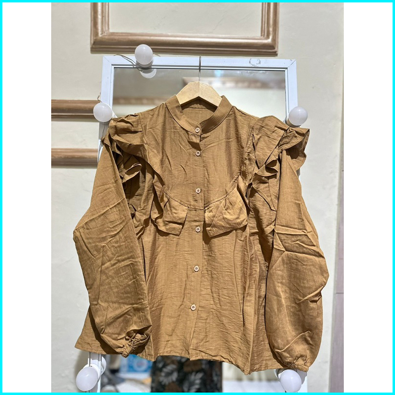 Blouse Rafella Viral Kekinian Polo Linen Premium Kemeja Wanita Terbaru