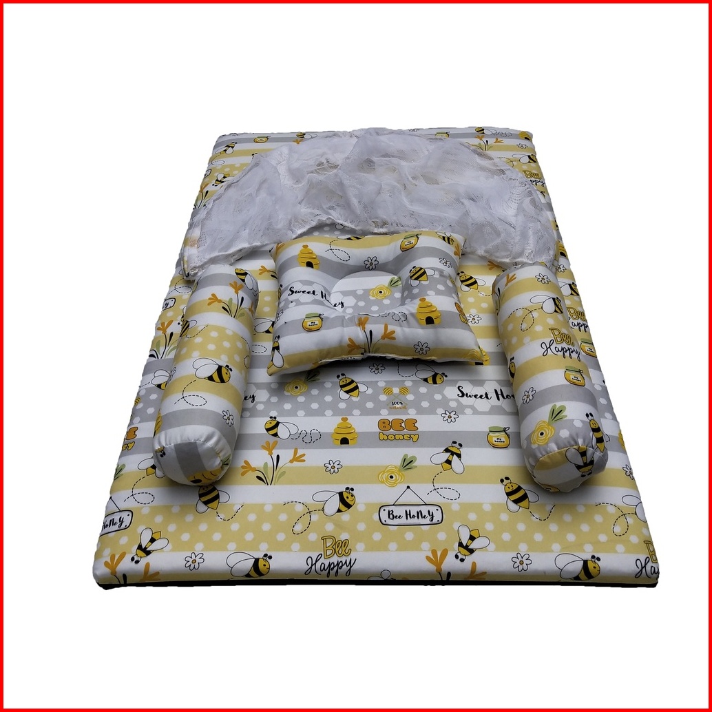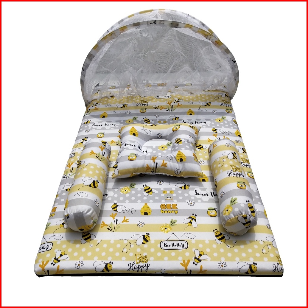 Harga Promo Kasur Bayi Kelambu Bisa Di Lepas Model Matras Lebah Bee Kuning And Abu Tosca