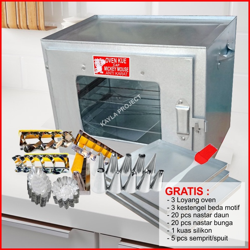 Oven Tangkring Kompor Open Kue 3 Susun Anti Karat Gratis Loyang Dan Cetakan Kue Kering Lengkap