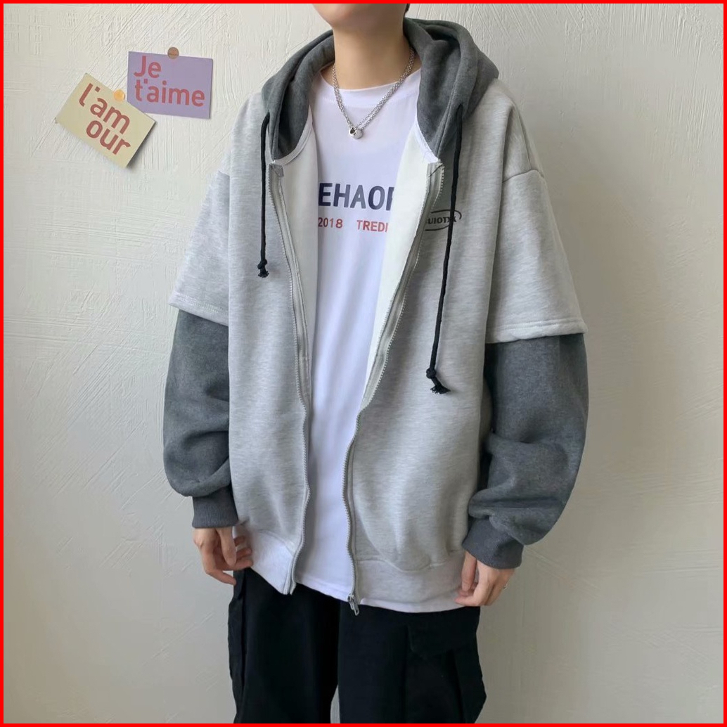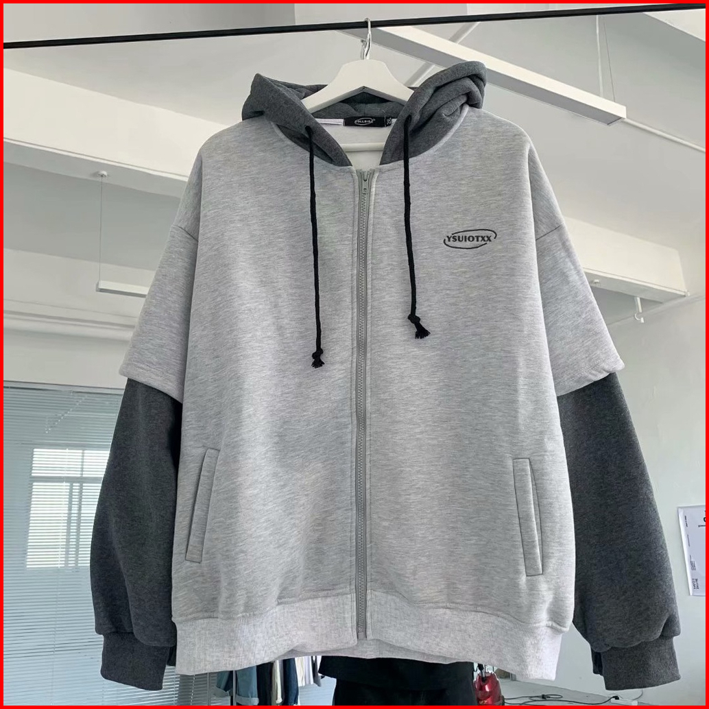 S - Xxxxxl 6xl Zipper Hoodie Kombinasi Ysuitoxx Jumbo Bigsize Jaket Fleece Korean Style Wanita Pria Oversize Ulzzang Sty