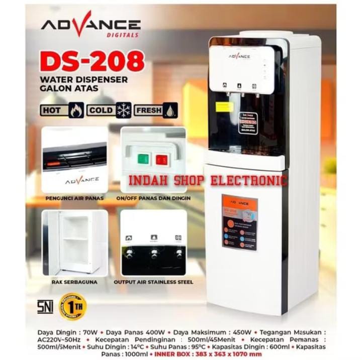 Advance Dispenser DS 208 3Kran (Panas, Dingin, Normal) ADVANCE DS 208 Dispenser Galon Atas Garansi Resmi & 100% ORI