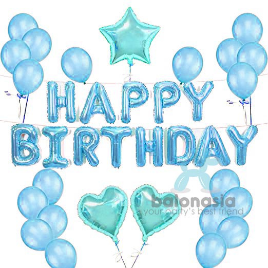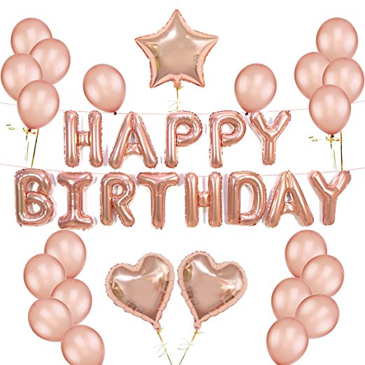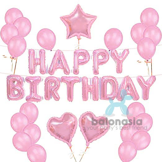 Balonasia Paket Dekorasi Happy Birthday + Latex Foil Set Rose Gold