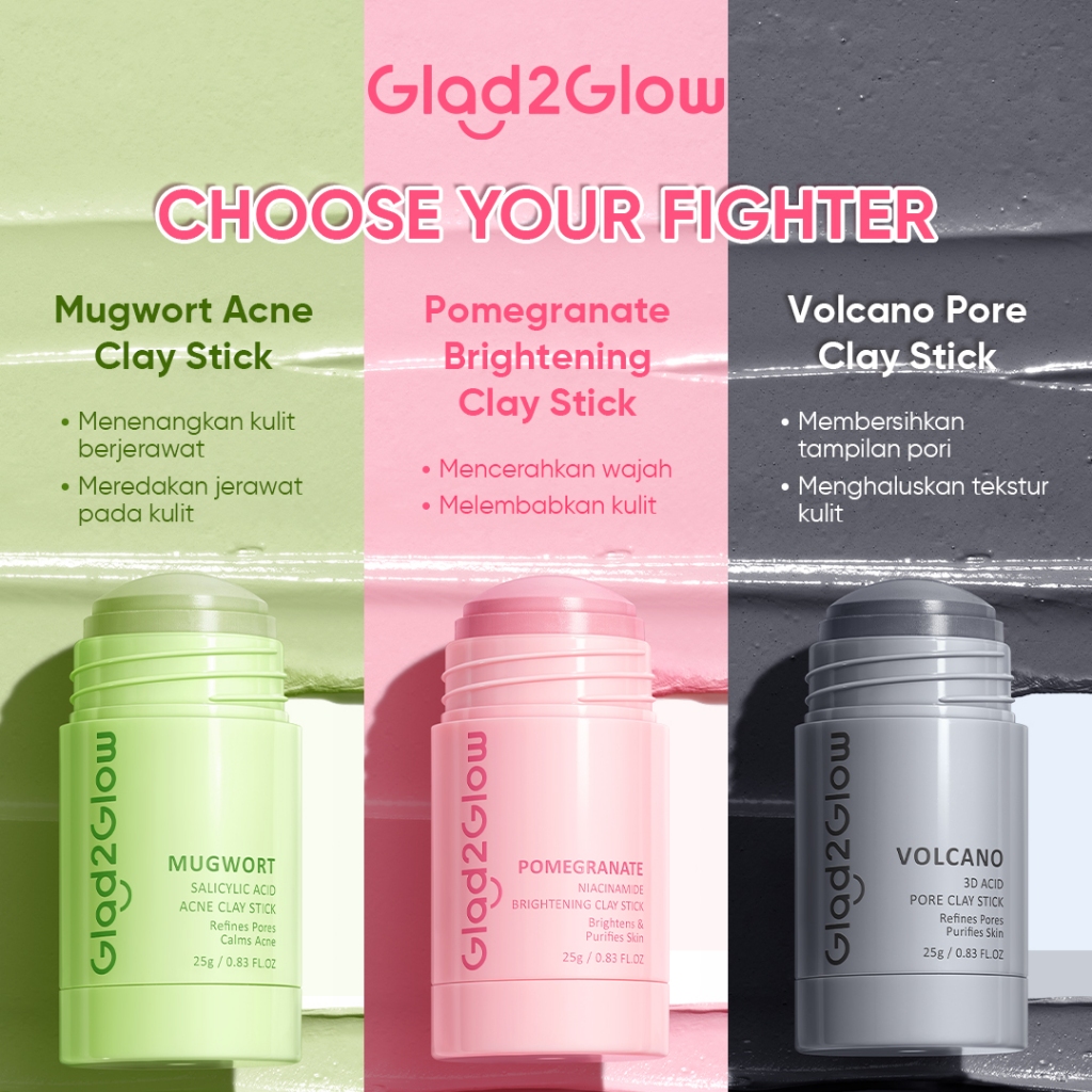Masker Glad2Glow Pomegranate Niacinamide Brightening Clay Stick 25g Masker Wajah Clay Mask G2G Pembersih Komedo