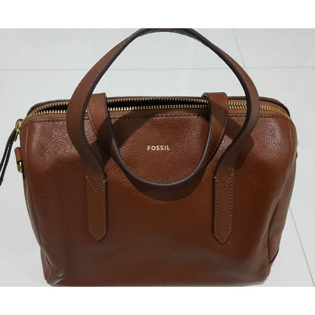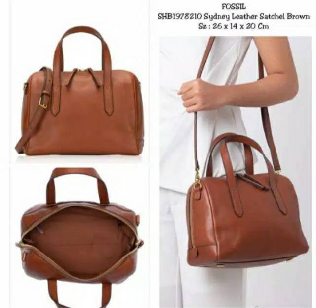 Tas Wanita Top Handle Selempang Sydney Satchel Brown Fossil Kulit Asli Elegan Original