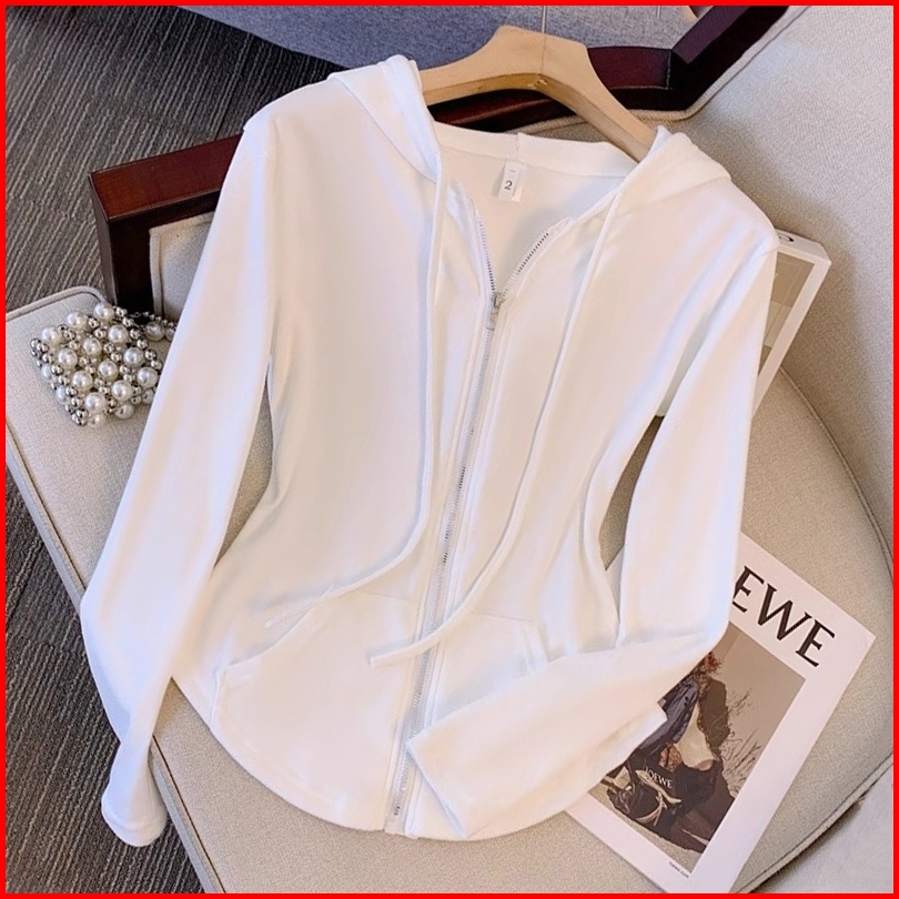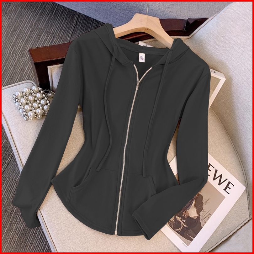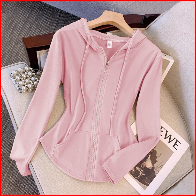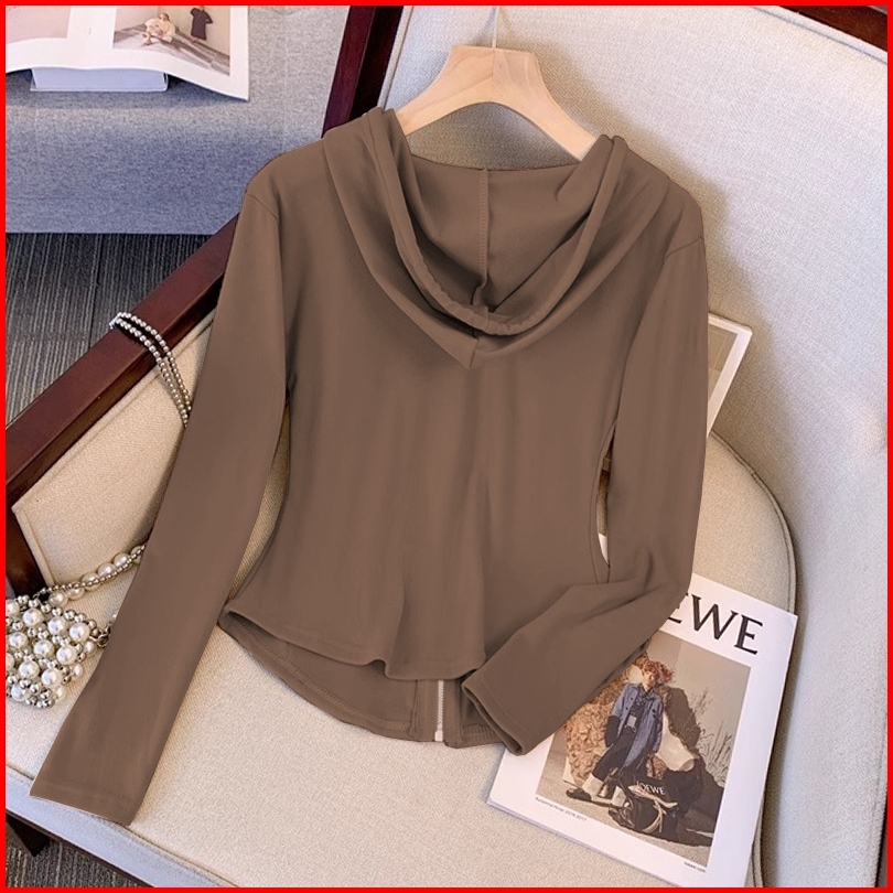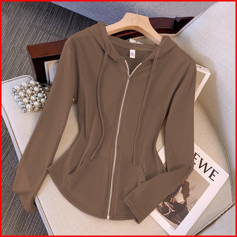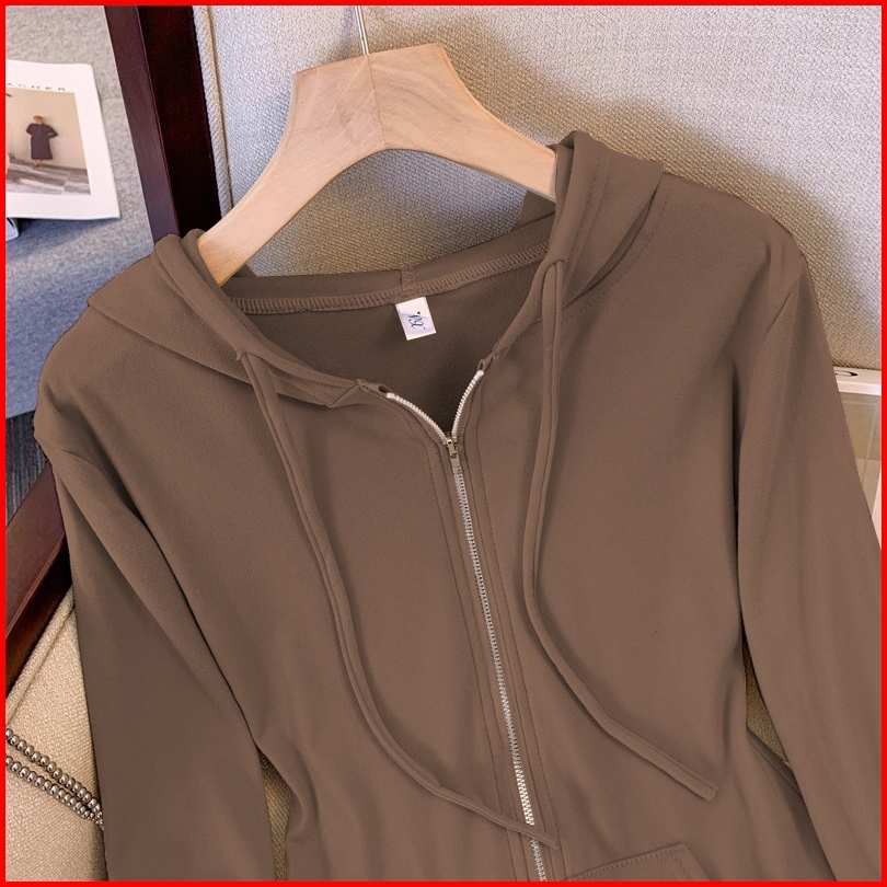 Cardigan Hoodie Resleting Coklat Stylish Crop Top Lengan Panjang Ala Korea Atasan Terbaru Untuk Wanita
