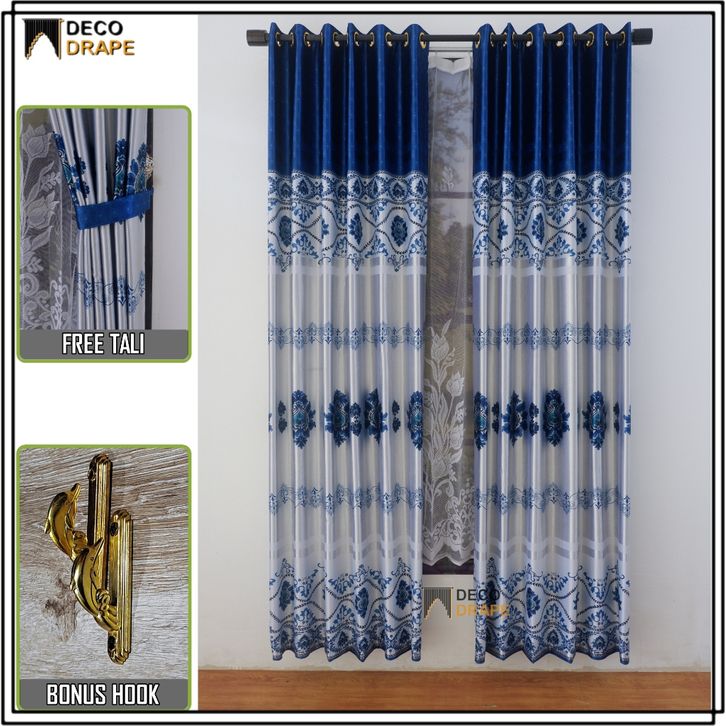 Gorden Jendela Panjang Kain Blackout Tebal Glossy Motif Batik Mewah