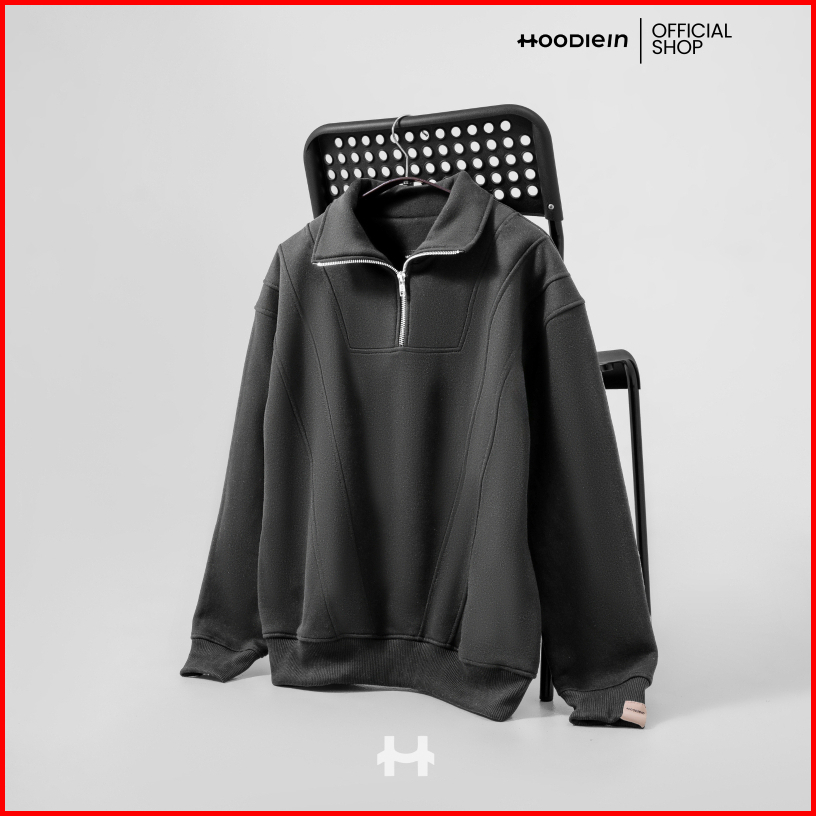 Hoodie.in Half Zipper Cotton Katun Regular Boxy - Dark Grey Pria Wanita