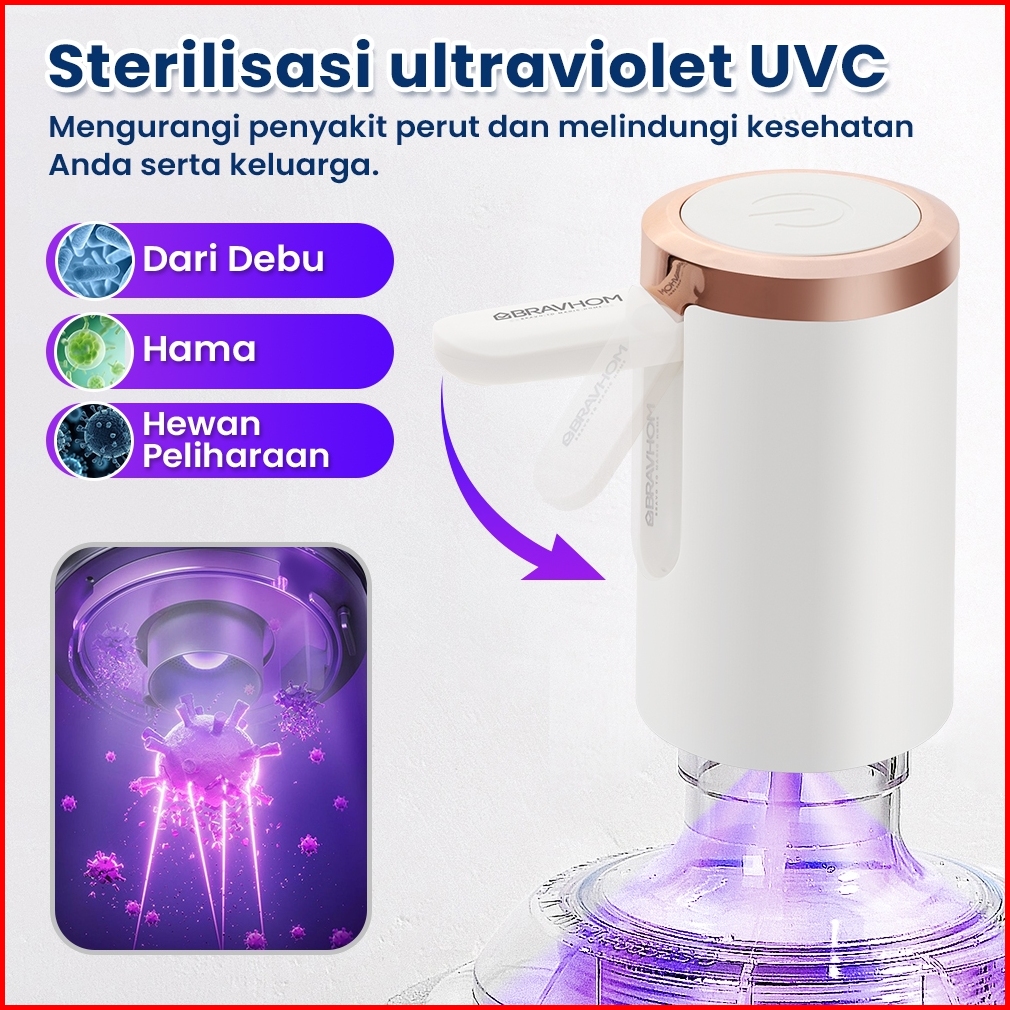Bravhom Pompa Air Galon Dispenser Air Lipat Desinfektan Sinaruv 50 Menit Pengisian Cepat Bl-wd02