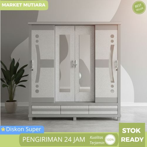 LEMARI PAKAIAN 3 2 4 PINTU SLIDING KACA LEMARI KAYU JATI MINIMALIS LEMARI PINTU GESER LEMARI KAYU BEST SELLER TERMURAH