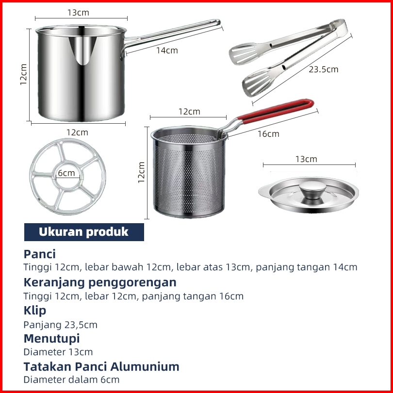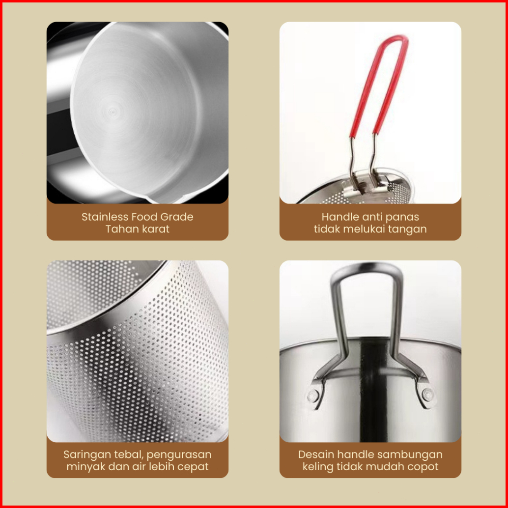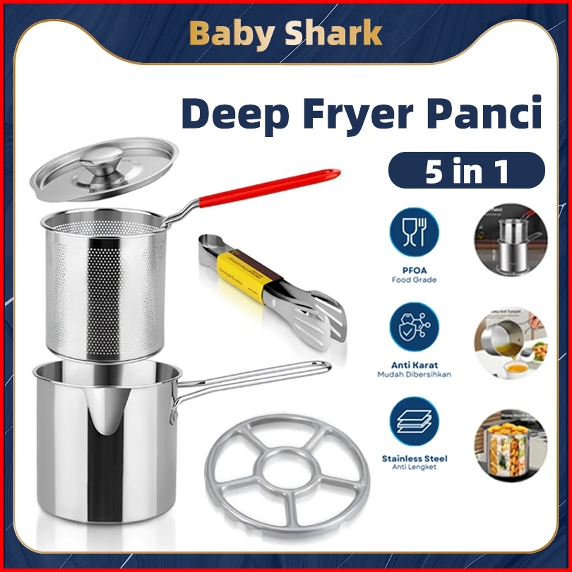 5in1 Deep Fryer Panci Multi Set Panci Rebus Penggorengan Stainless Steel Bisa Goreng Dan Rebus