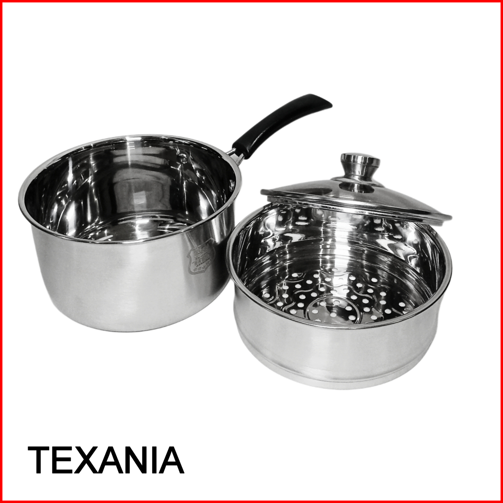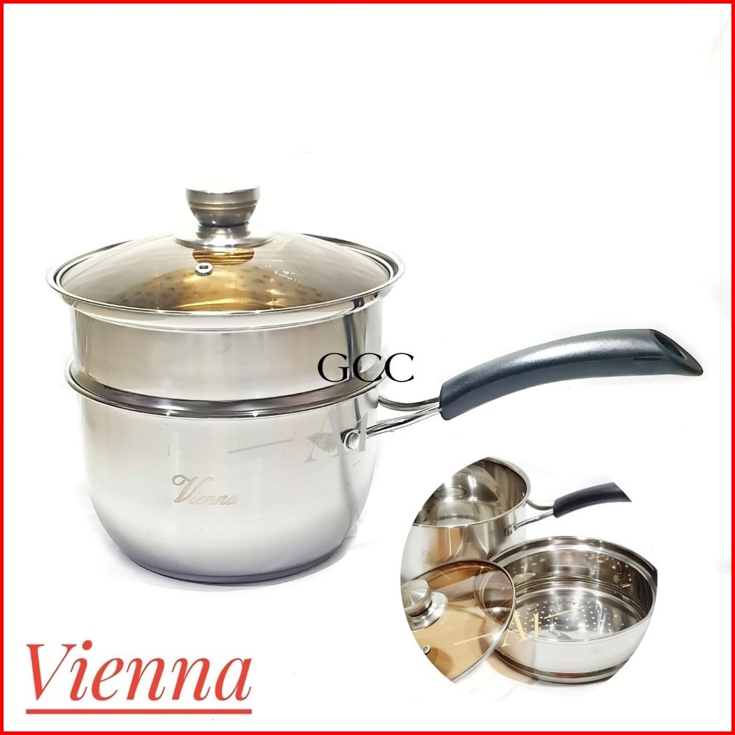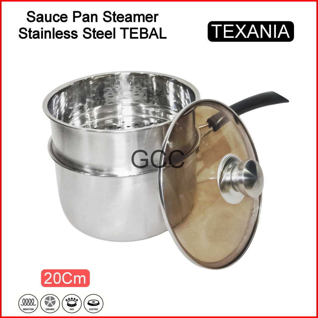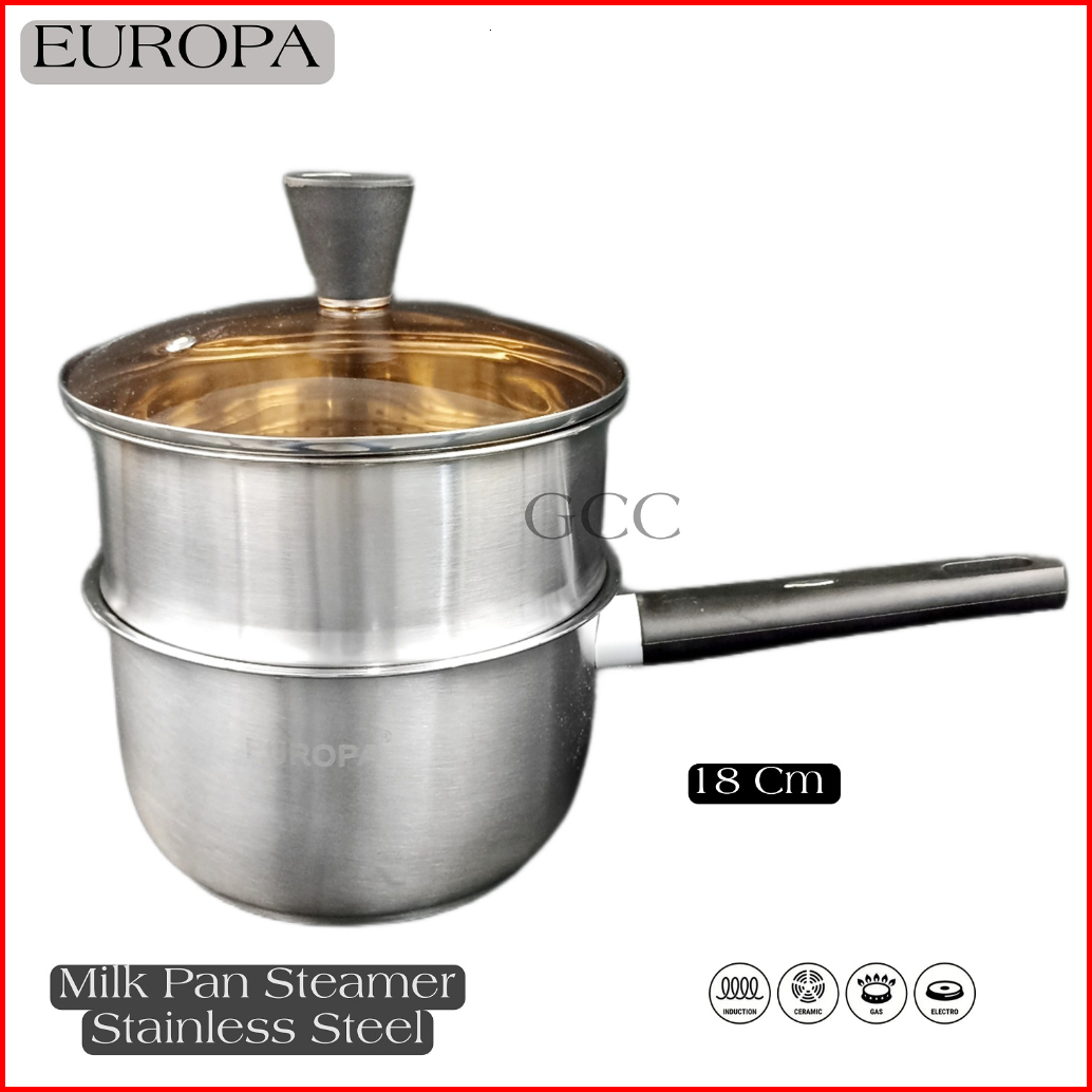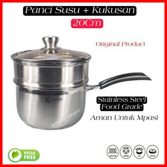 Dandang Steamer Gagang Satu 20cm Panci Kukus Kecil 2susun Stainles Tebal Tutup Kaca Calypso Milk Pan
