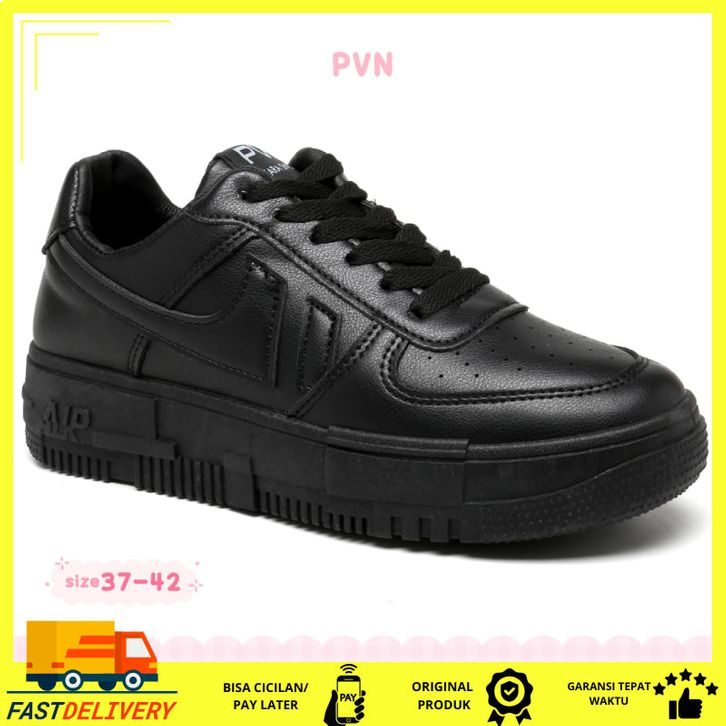 PVN Kara Sepatu Sekolah Hitam Sneakers Casual Wanita Sport Shoes Black 155