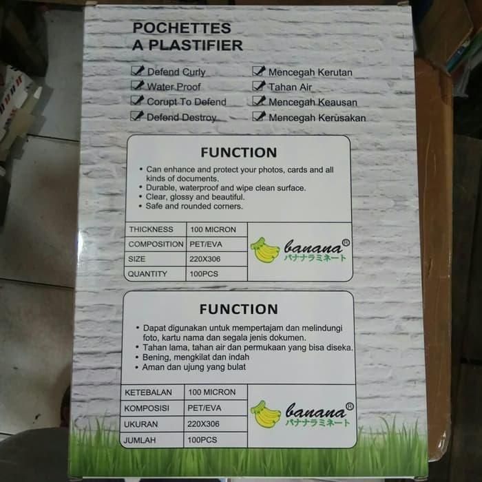 plastik laminating ukuran A4 merk banana 1 pack isi (100)