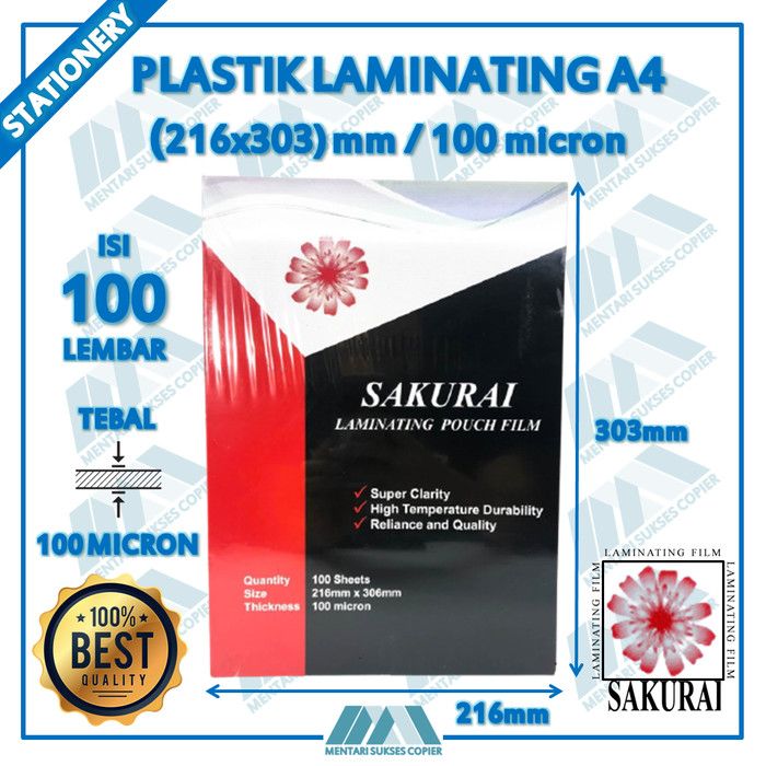 PLASTIK LAMINATING FILM SAKURAI A4 216 MM X 303 MM 100 MICRON TERMURAH