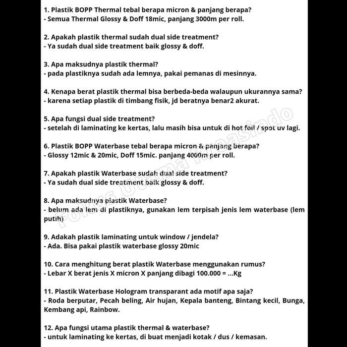 Plastik Laminating BOPP Thermal Doff 35cm - 18mic - Laminasi offset
