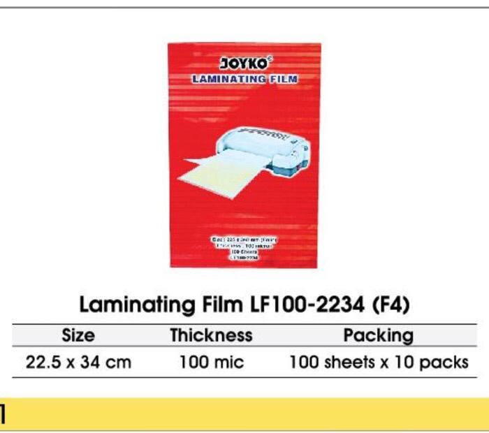 Plastik Laminating Joyko Folio F4 Tebal 100mic Isi 100 Pcs