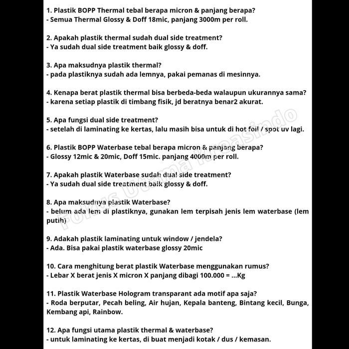 Plastik Laminating BOPP Thermal Film 18mic Offset Laminasi Dus Kemasan