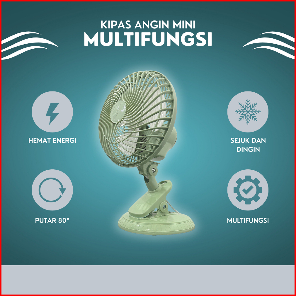 Pplus Kipas Angin Multi Fungsi Jepit Meja Duduk Dinding Tembok Muter Kiri Kanan 8 Inch 25w