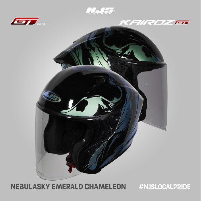 HELM NJS KAIROZ GT NEBULASKY EMERALD CHAMELEON HALF FACE FREE SPOILER ORIGINAL HELMET TERMURAH TERLARIS