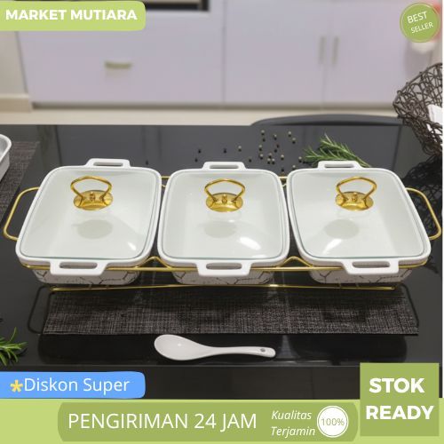 prasmanan set keramik Prasmanan Gandeng Keramik Marble Fiorenza Set 3 Pcs Tutup Kaca terlaris termurah keramik premium