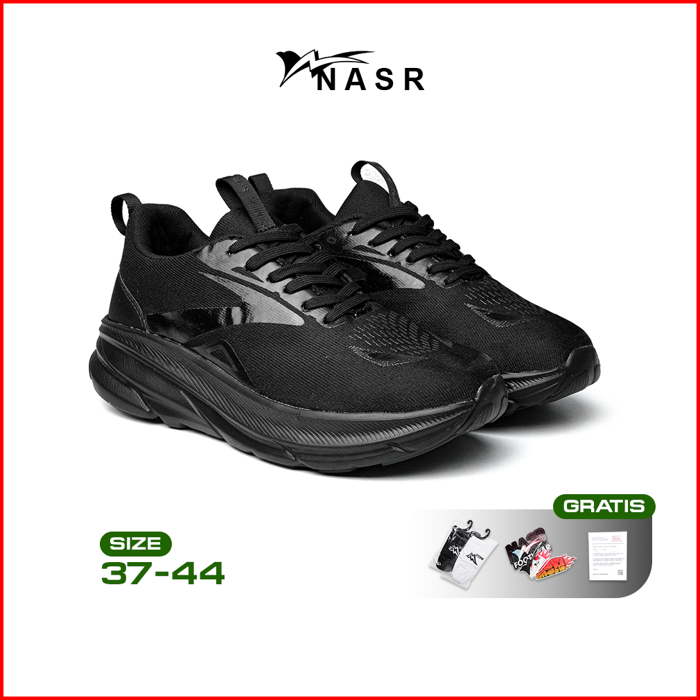 Nasr Vortex Run - Sepatu Olahraga Running Sporty Sneakers Casual Pria Wanita Triple Black